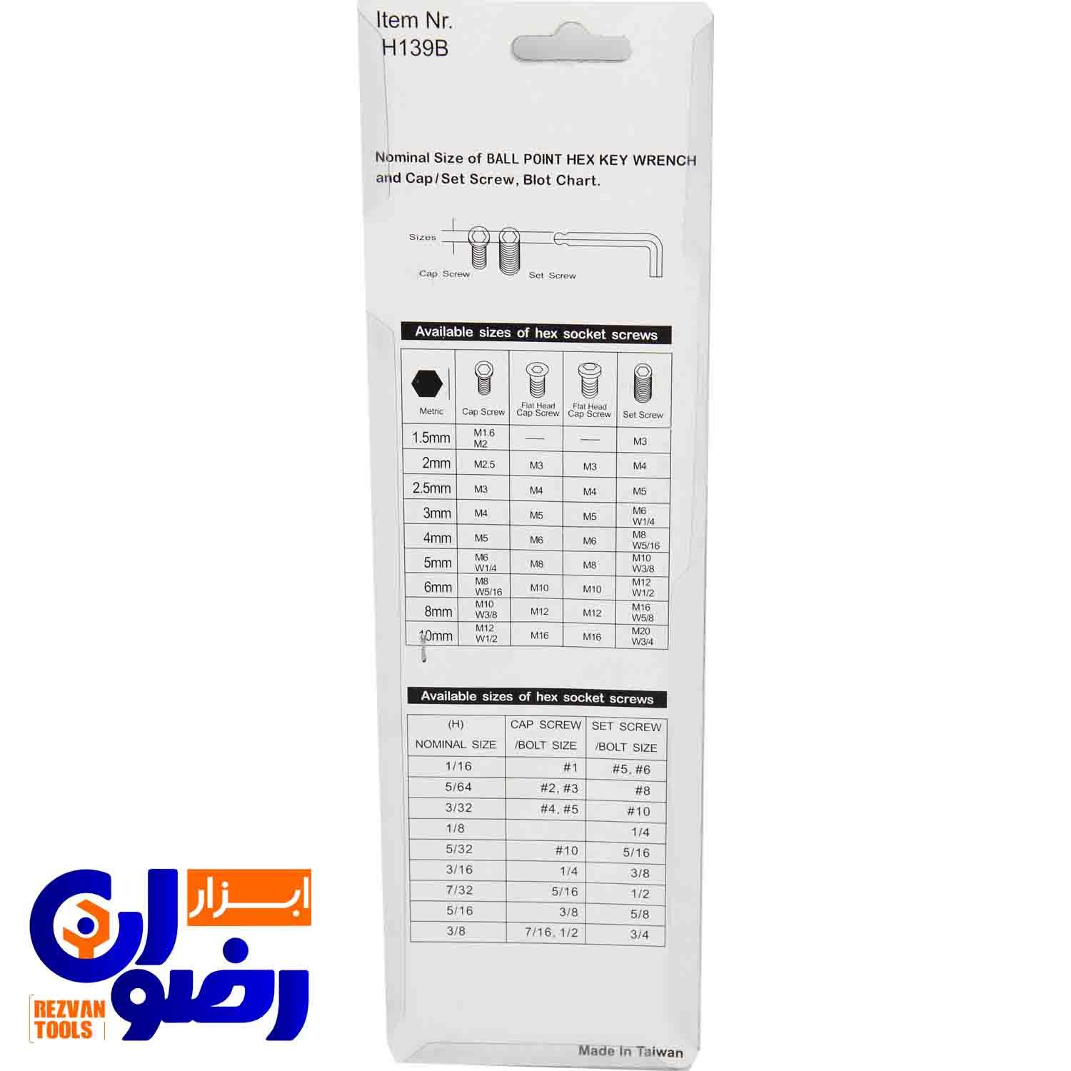 ست آلن تایوانی با آلیاژ S2 | دارای سر گرد جهت استفاده در زاویه 30 درجه | سایز بندی 1/5، 2، 2/5، 3، 4، 5، 6، 8، 10 میلیمتر